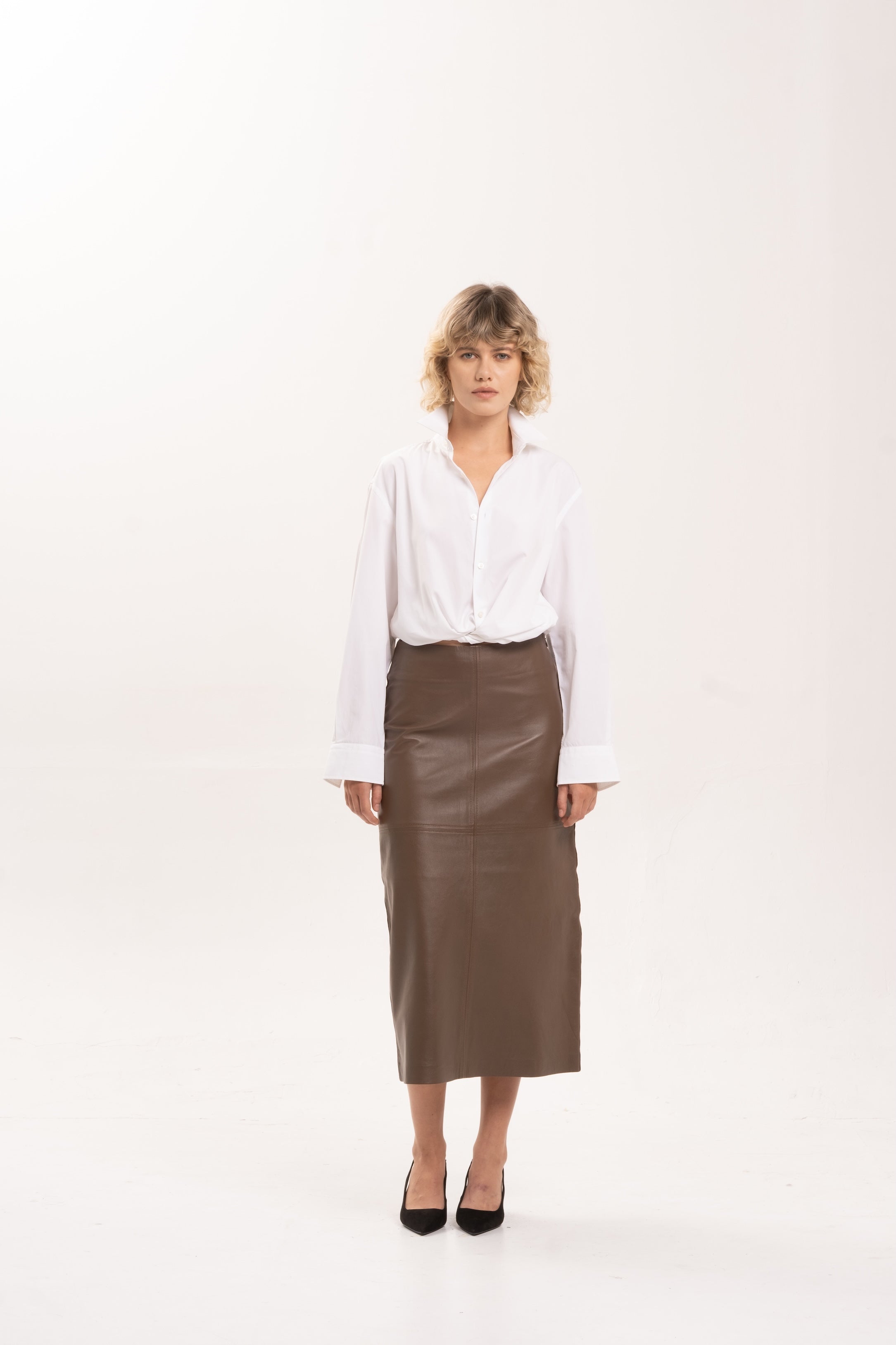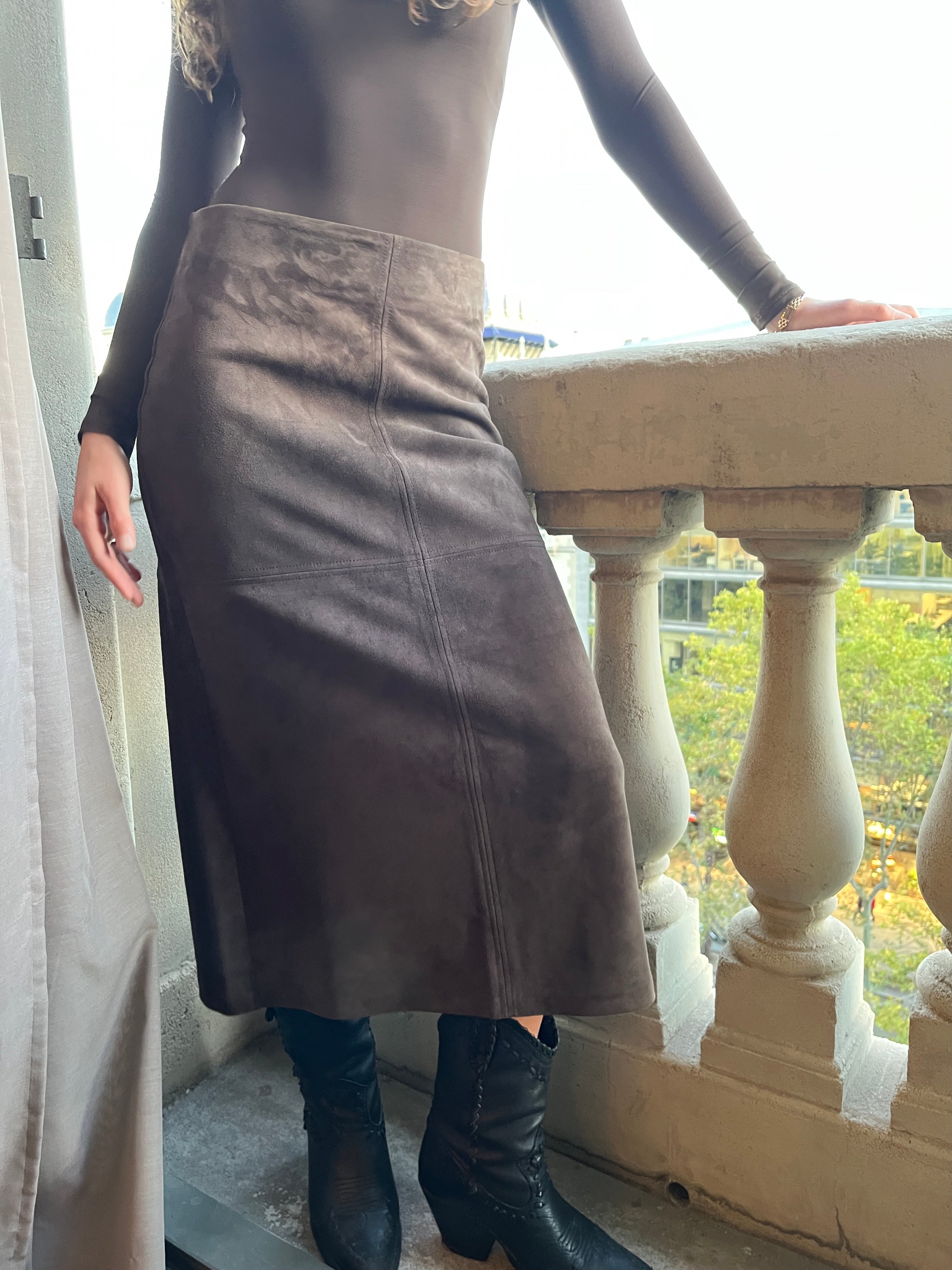 Discover 2NDSKIN’s collection of leather and suede skirts, designed to bring effortless sophistication to the modern wardrobe. Crafted from butter-soft leather and premium suede, each silhouette balances refined tailoring with natural movement.