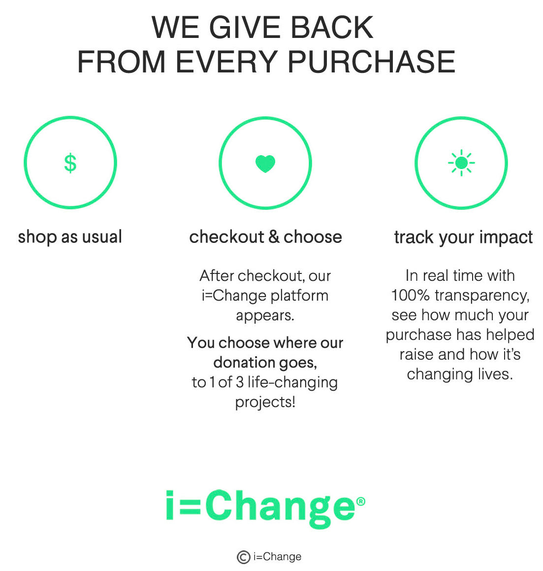 $1 of your purchase goes to the charity of your choice with i=Change®